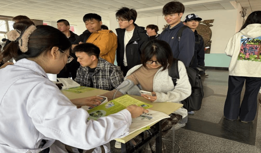 活动现场,校医务室医护人员向师生细致讲解了结核病的传播途径、临床症状及预防方法,同时提供免费血压测量服务,并就师生提出的健康问题给予专业解答。现场师生积极参与咨询,部分师生询问日常防护要点,另有部分师生关注个人血压状况,整体氛围既热烈又井然有序。